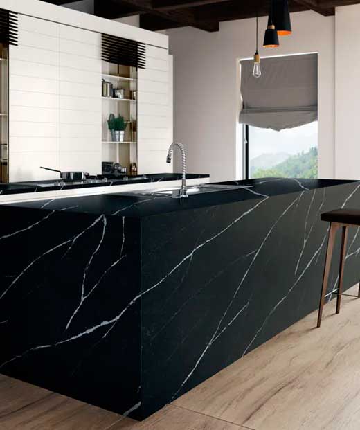 Silestone é composto por cerca de 94% de quartzo natural, o que lhe proporciona dureza e resistência extraordinárias. É uma superfície excelente para bancadas de cozinha, banheiros, pisos e revestimentos de parede com quantidade reduzida de juntas.
